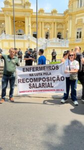 O funcionalismo estadual reuniu-se em peso, nesta quarta-feira (18/03), na Zona Sul do Rio, para protestar contra os desmandos e os casos de corrupção envolvendo a administração do governador do Rio, Cláudio Castro. Representantes do Sindicato dos Enfermeiros do Rio de Janeiro (SindenfRJ) se juntaram aos servidores e participaram de uma caminhada que teve início no Largo do Machado e seguiu até o Palácio Guanabara, em Laranjeiras. Dentre as principais reivindicações de uma pauta unificada de todas as categorias, estavam a recomposição salarial e a implementação integral de planos de Cargos e Salários (PCCS). A marcha, que aconteceu entre o fim da manhã e o inicio da tarde, reuniu centenas de pessoas que gritavam palavras de ordem contra o que chamavam de “calote de Castro”.