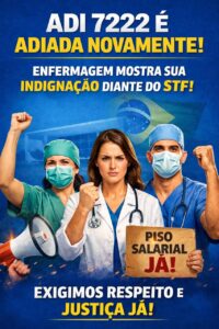 O Sindicato dos Enfermeiros do Rio de Janeiro (SindenfRJ) vem a público manifestar toda a sua indignação diante do novo adiamento do julgamento de mérito da Ação Direta de Inconstitucionalidade (ADI) 7.222 pelo Supremo Tribunal Federal (STF). O processo, que trata da Lei 14.434/22 que instituiu o Piso Nacional da Enfermagem, seria retomado esta semana em sessão virtual prevista para acontecer entre 27 de fevereiro e 6 de março. Mas, como houve pedido de vista, a análise da ADI foi suspensa mais uma vez. A decisão prolonga por até 90 dias a definição sobre a constitucionalidade do piso, ampliando a insegurança de milhares de profissionais. É inadmissível que um tema tão essencial para a valorização da Enfermagem siga sendo postergado.