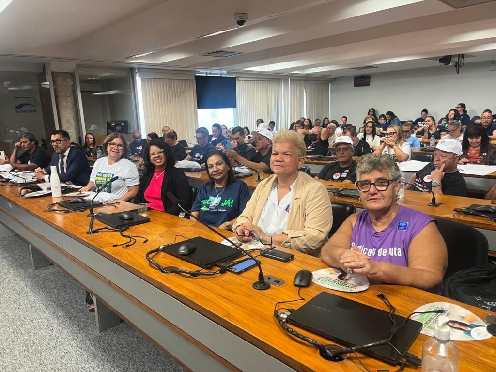 A presidente do Sindicato dos Enfermeiros do Rio de Janeiro (SindenfRJ), Elizabeth Guastini, esteve em Brasília, nesta terça-feira (17/03), para participar de um ato e de uma audiência pública sobre a tramitação da PEC 19/24 no Senado. A Proposta de Emenda Constitucional em questão trata da vinculação do pagamento do Piso Nacional da Enfermagem a uma carga horária de 30 horas. No momento, a PEC encontra-se na Comissão de Constituição e Justiça (CCJ) aguardando, desde o ano passado, um parecer. Também participaram dos eventos representantes da Federação Nacional dos Enfermeiros (FNE) e de sindicatos vinculados a profissionais de Saúde de todo o país.